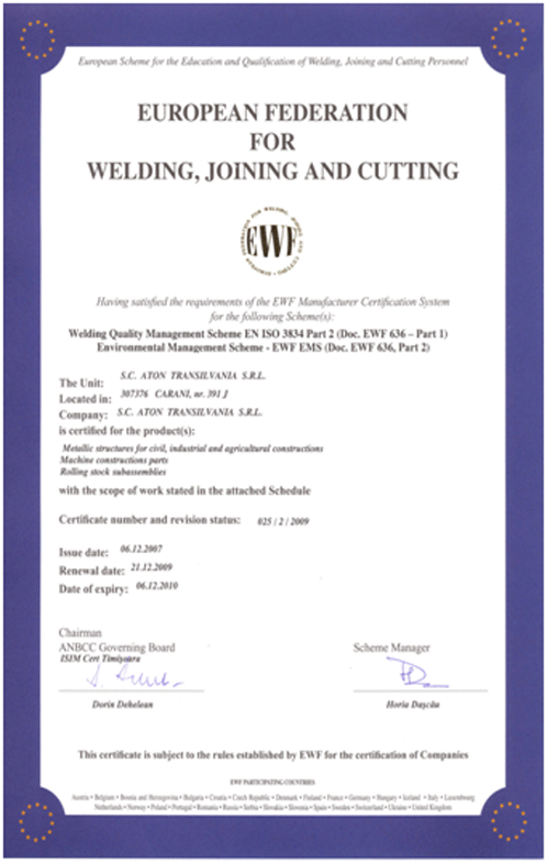 şi Federaţia Europeană de Sudură (IIW/EWF)